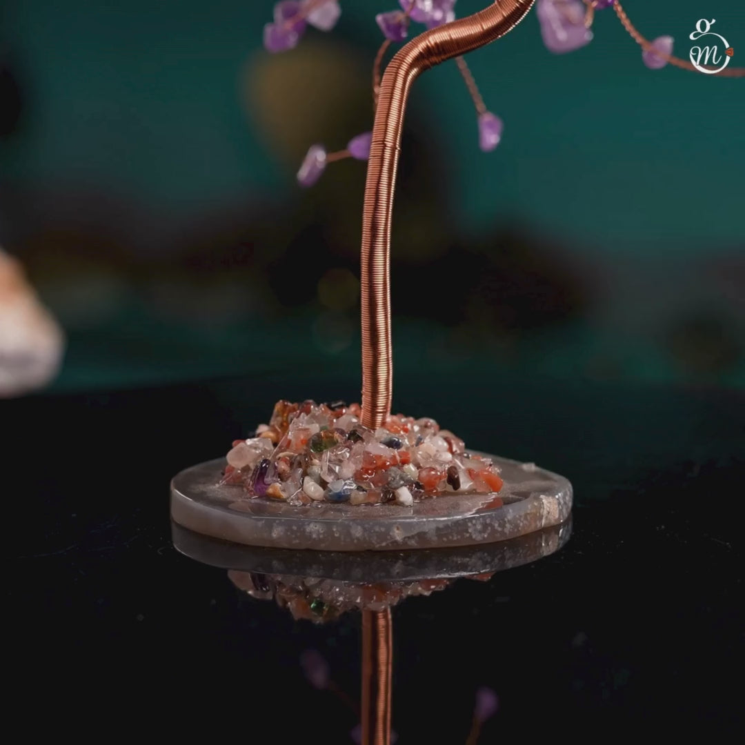 - Amethyst crystal tree with agate base for grounding and clarity.