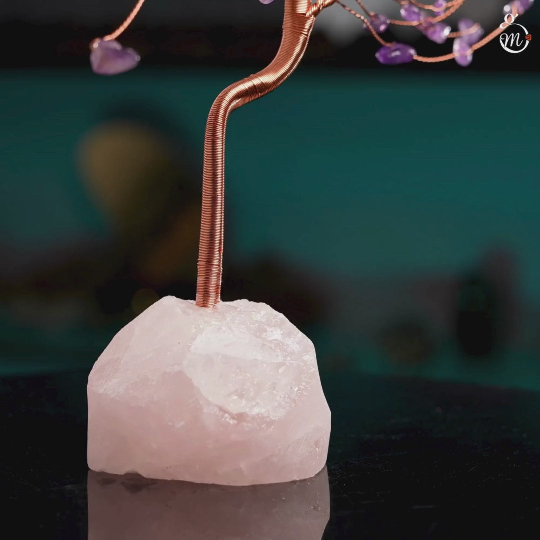 The Amethyst With Raw Rose Quartz Large Tree beautifully combines the soothing energy of amethyst with the loving essence of raw rose quartz. Designed to foster spiritual growth and emotional healing, this tree radiates tranquility and love. Ideal for enhancing your space, it promotes inner peace and positive energy with its striking design and harmonious properties.