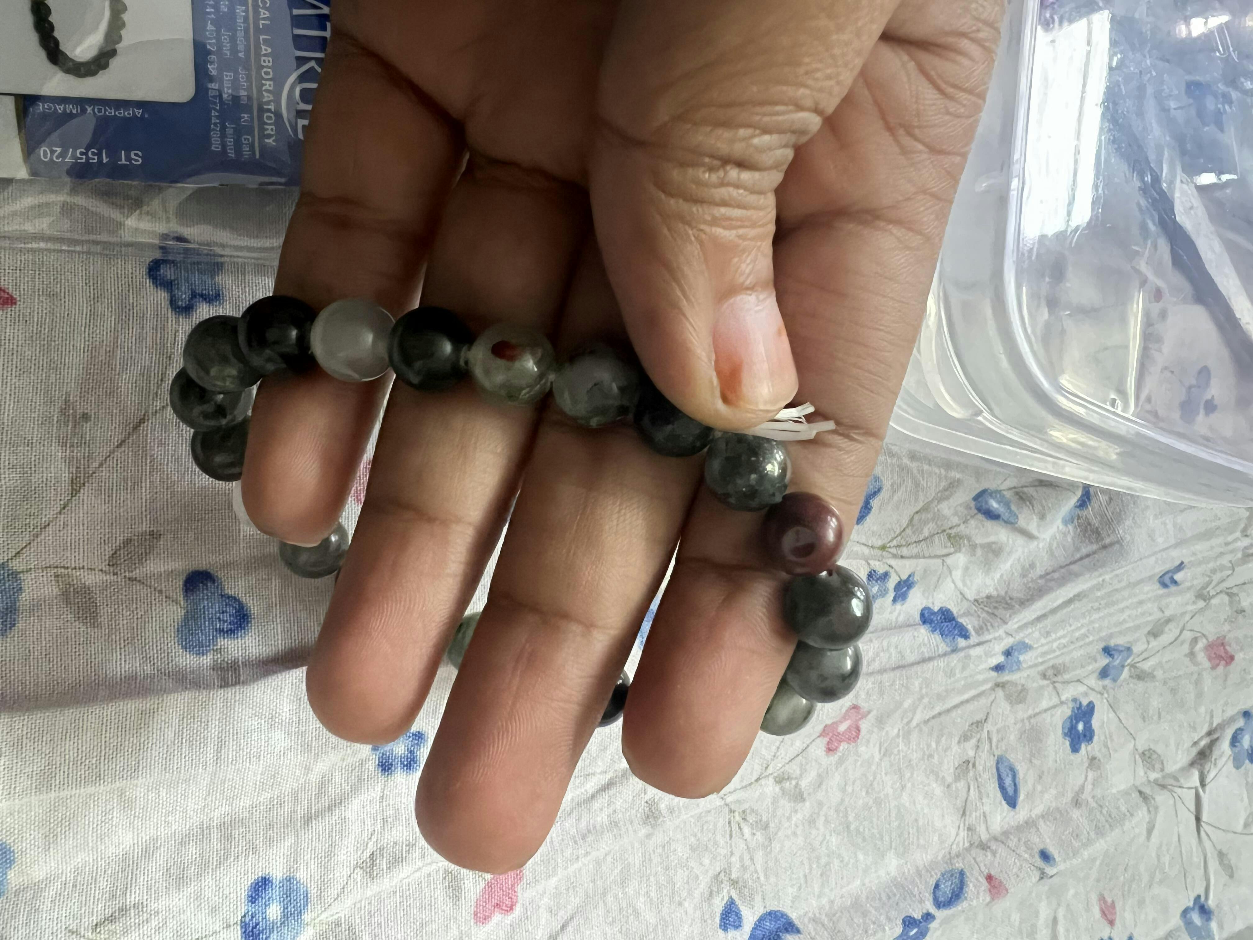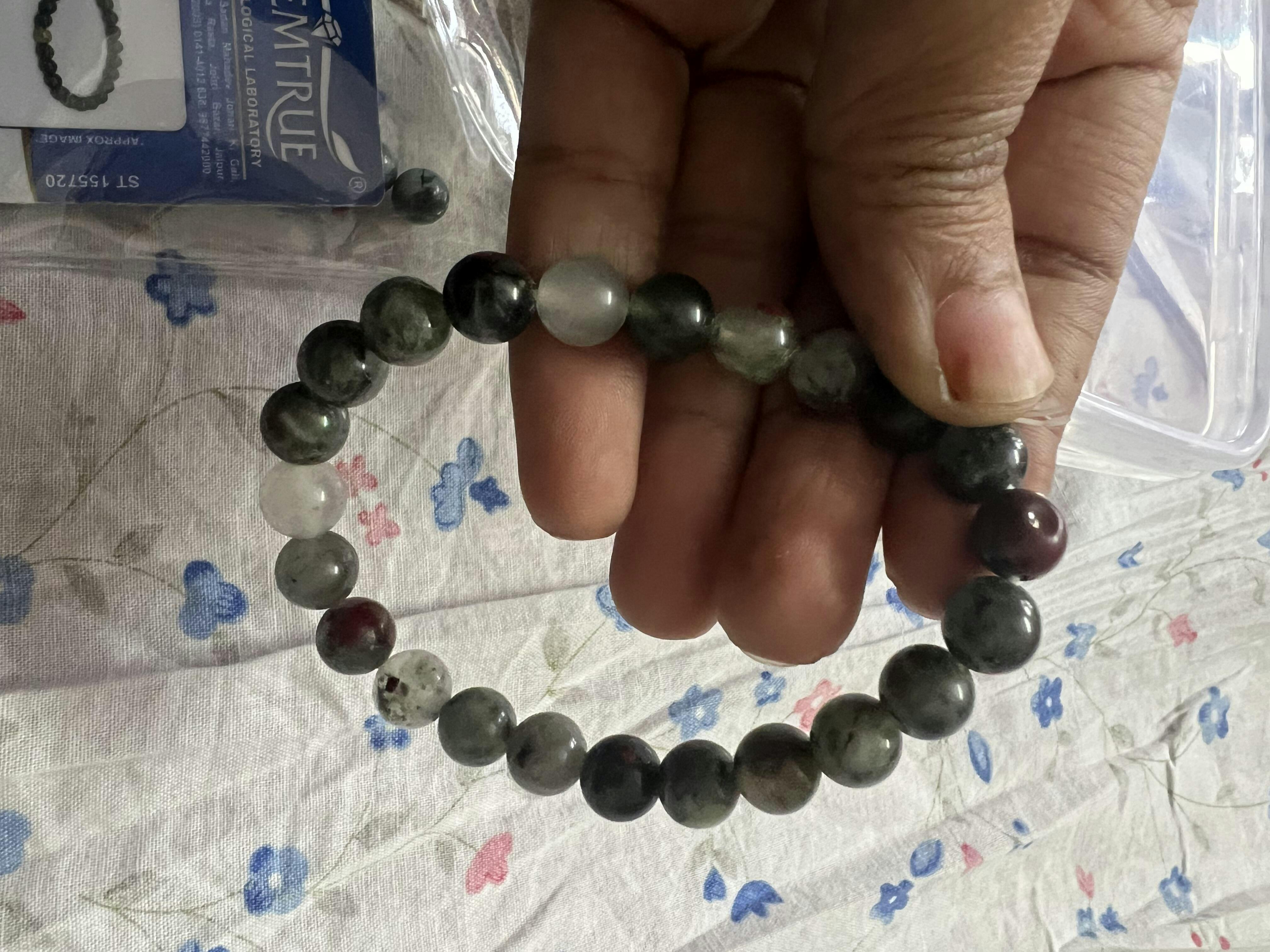 The Bloodstone crystal bracelet features deep green beads with striking red flecks, symbolizing strength, vitality, and protection. These polished beads are arranged on a stretchable band for a comfortable fit. This original Bloodstone bracelet is associated with Mars, enhancing courage, resilience, and grounding energy while promoting overall well-being.