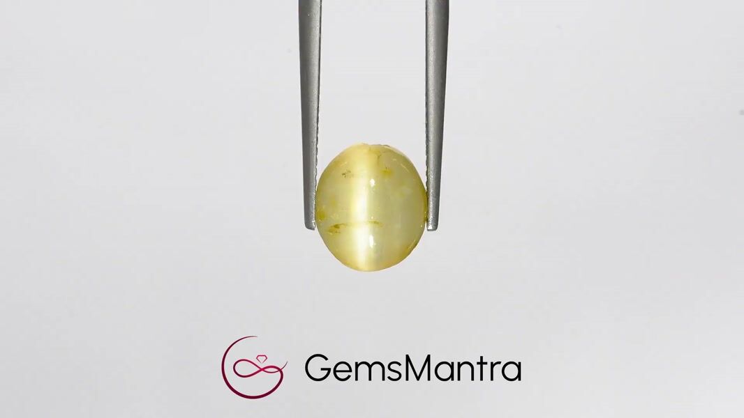 Natural Cats Eye Quartz shows a glowing light band that flows gracefully across its polished surface. Originating from Brazil, it is known to bring protection, intuition, and emotional stability. Designed in an oval cabochon shape with a refined faceted finish, the gemstone weighs 5.4 carats. Certified by an accredited gemological authority, confirming its authenticity and natural origin.
