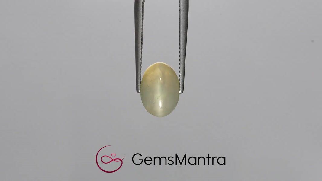Natural Cats Eye Quartz radiates a luminous band of light that gracefully shifts with every movement. Sourced from Brazil, it is revered for warding off negativity and promoting focus and inner peace. Crafted in an oval cabochon form with a beautifully faceted finish, it weighs 5.45 carats. Certified by a recognized gemological institute, ensuring authenticity and natural formation.