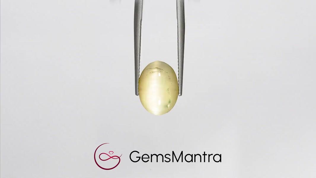 Natural Cats Eye Quartz shines with a radiant moving light band that enhances its graceful beauty. Originating from Brazil, it is admired for its protective aura and ability to heighten intuition and awareness. Cut in an oval cabochon form with an elegant faceted surface, the gemstone weighs 9.67 carats. Certified by a reputed gemological authority, confirming authenticity and natural origin.