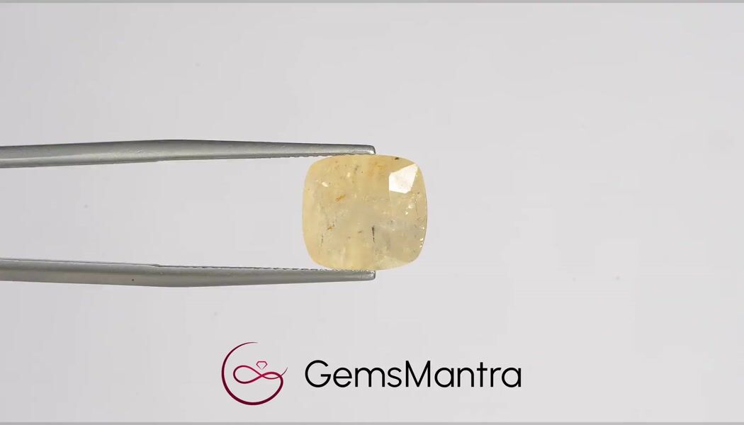 Bathed in golden brilliance, this Ceylon Yellow Sapphire captivates with its luminous and regal charm. Governed by Jupiter, it is known to enhance wisdom, wealth, and spiritual clarity. Skillfully cut in a cushion shape with fine faceting, the gemstone weighs 9.03 carats. Certified by an authorized gemological lab, ensuring authenticity and natural origin.