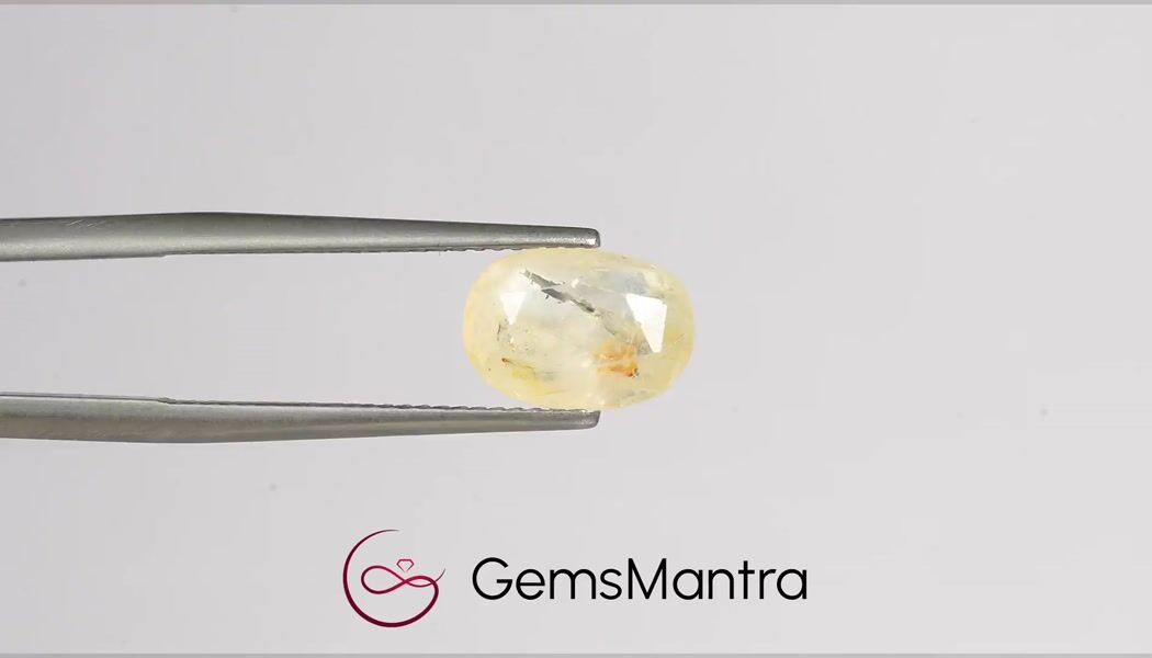 Glowing with a bright golden tone, this Ceylon Yellow Sapphire radiates elegance and grace. Governed by Jupiter, it is said to attract positivity, wisdom, and financial growth. Cut in a refined cushion shape with a detailed faceted finish, it weighs 3.57 carats. The gem is certified by a reputed gemological authority for authenticity and superior quality.