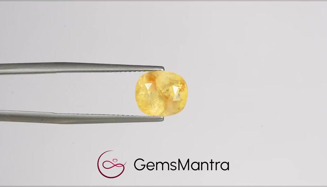 Exuding a soft golden charm, the Ceylon Yellow Sapphire carries an aura of elegance and vitality. Linked with Jupiter, it is believed to foster wisdom, prosperity, and positive growth. Crafted in a graceful cushion form with a refined faceted cut, it weighs 5.25 carats. The gemstone is certified by a trusted gemological body for authenticity and natural quality.