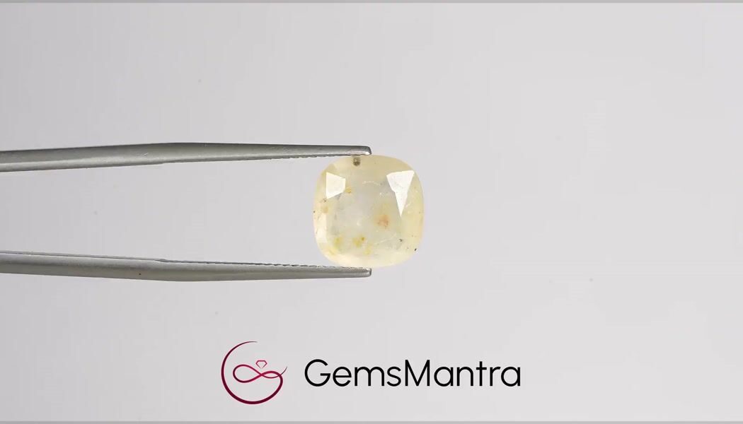 Displaying a luminous golden hue, the Ceylon Yellow Sapphire embodies beauty and divine grace. Connected with Jupiter, it is said to enhance intellect, wealth, and spiritual balance. Cut in a refined cushion shape with skillful faceting, the gemstone weighs 4.68 carats. Certified by a trusted gemological institute, ensuring authenticity and natural quality.