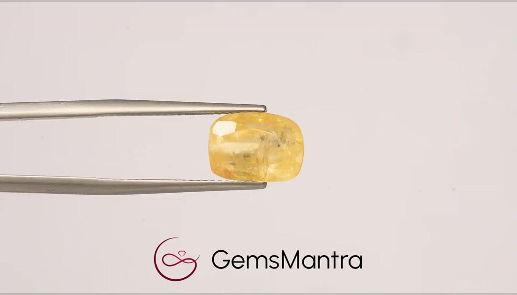Natural Ceylon Yellow Sapphire showcases a radiant golden hue with striking clarity and elegance. Governed by Jupiter, it is believed to foster prosperity, wisdom, and emotional balance. Expertly crafted in a cushion shape with fine faceting, the gemstone weighs 6.67 carats. Certified by a reputed gemological institute, ensuring authenticity and superior quality.