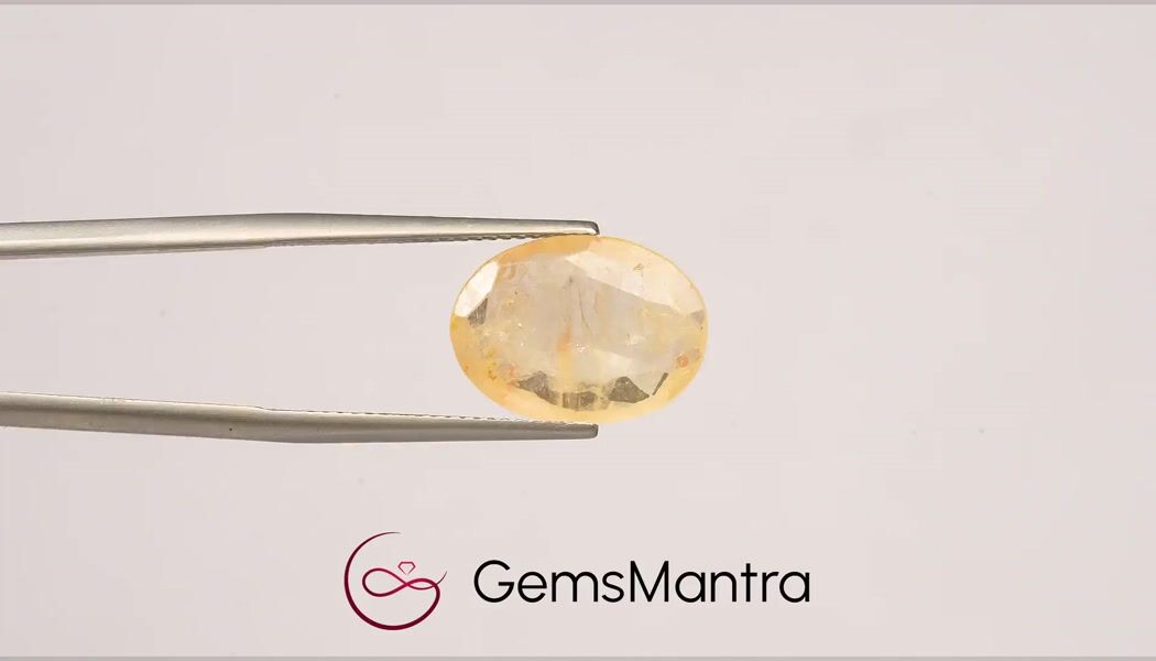 Natural Ceylon Yellow Sapphire exhibits a warm golden brilliance that speaks of sophistication and purity. Associated with Jupiter, it is known to enhance clarity, wisdom, and financial well-being. Fashioned in an oval shape with intricate faceting, the gemstone weighs 6.18 carats. Certified by an accredited gemological authority, confirming authenticity and natural origin.