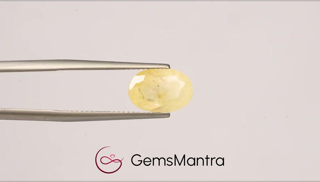 Natural Ceylon Yellow Sapphire glows with a vibrant golden shade that reflects elegance and purity. Connected with Jupiter, it is believed to attract prosperity, knowledge, and good fortune. Cut in an oval form with a beautifully faceted surface, the stone weighs 4.85 carats. Certified by a reputed gemological laboratory, ensuring authenticity and premium quality.