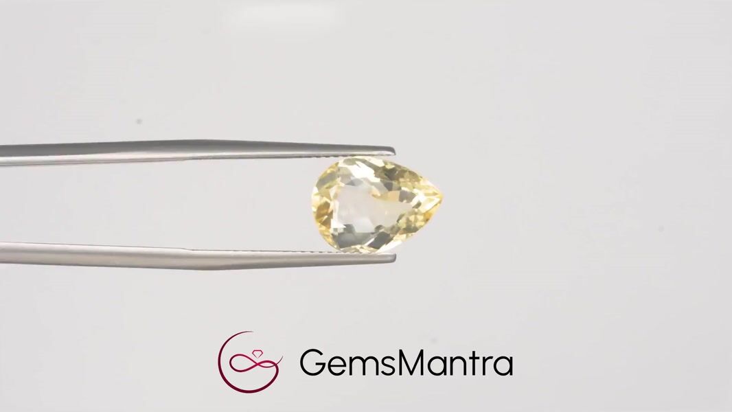 Natural Citrine features a sunny yellow hue, commonly linked to optimism, clarity, and personal growth. Influenced by Jupiter, it is believed to enhance confidence, attract success, and sharpen the mind. This 4.38-carat gemstone is cut in a pear shape with a mixed faceted style, sourced from Brazil. The stone comes with certification confirming its natural origin and authenticity.