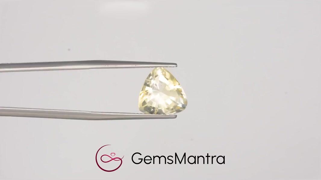 Natural Citrine showcases a lively yellow color, often associated with joy, clarity, and positive energy. Connected to the planet Jupiter, it is believed to support confidence, success, and clear thinking. This 4.5-carat gemstone features a unique trillion shape with a mixed faceted cut, sourced from Brazil. The stone is certified for its natural origin and verified authenticity.