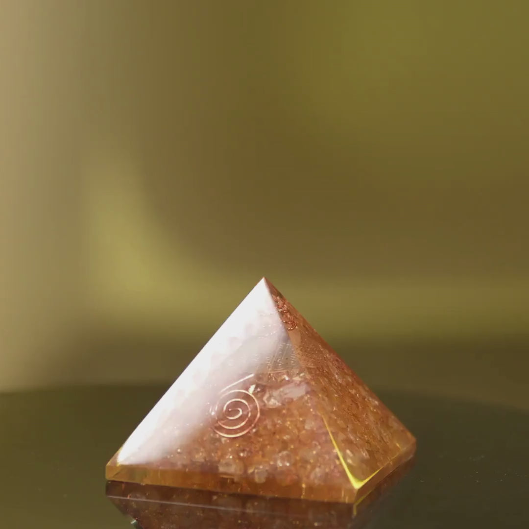 The Citrine Orgonite Pyramid is a powerful tool for attracting positivity, abundance, and confidence. Infused with natural Citrine crystals, it enhances creativity, uplifts energy, and fosters a joyful atmosphere. Set in a resin matrix, this pyramid amplifies orgone energy, neutralizing negativity while promoting success and well-being.