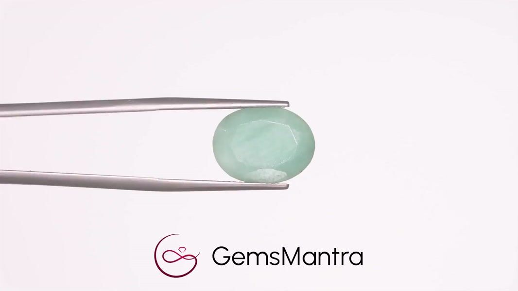 The natural Brazilian Emerald shines with a vivid green hue, celebrated as a symbol of prosperity, harmony, and timeless beauty. Associated with Mercury, it is believed to bring wisdom, clarity, and positive energy. Weighing 8.60 carats, the stone is cut in a graceful oval shape. Certified for authenticity, the gemstone assures genuine origin and exceptional purity.