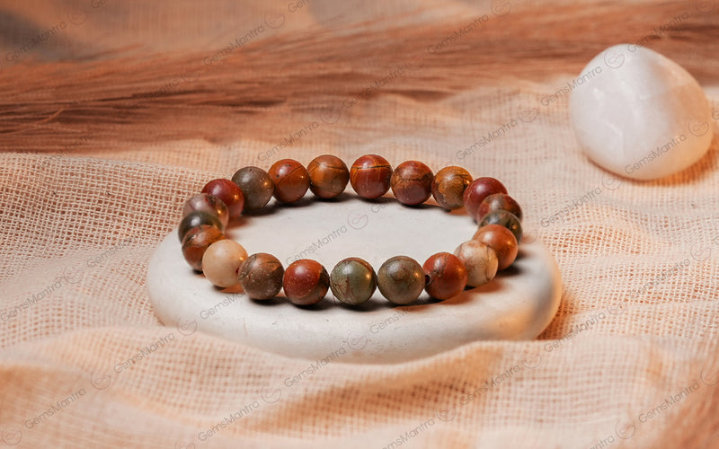 The Picasso Jasper crystal bracelet is crafted from high-quality, natural Picasso Jasper beads, admired for their artistic patterns and grounding energy. These beautifully polished beads are arranged on a stretchable band, ensuring a comfortable and secure fit. This original bracelet enhances creativity, emotional balance, and inner peace.