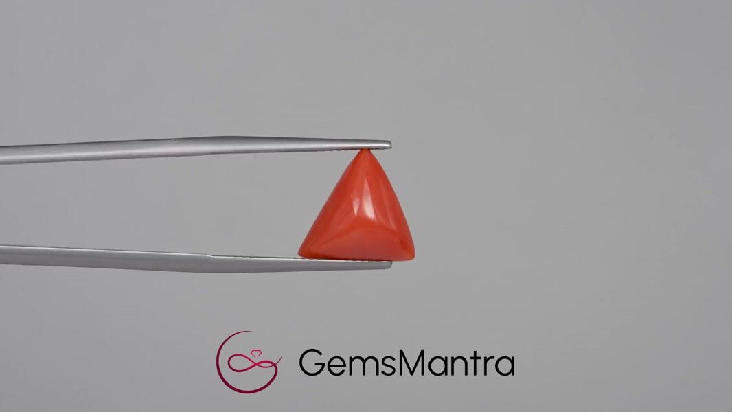 Red Coral, 5.57 carats, sourced from Japan, displays a rich red hue with a smooth, polished finish. Governed by Mars, this powerful gem is believed to boost confidence, strength, and success. Certified and untreated, ensuring natural purity and authenticity.