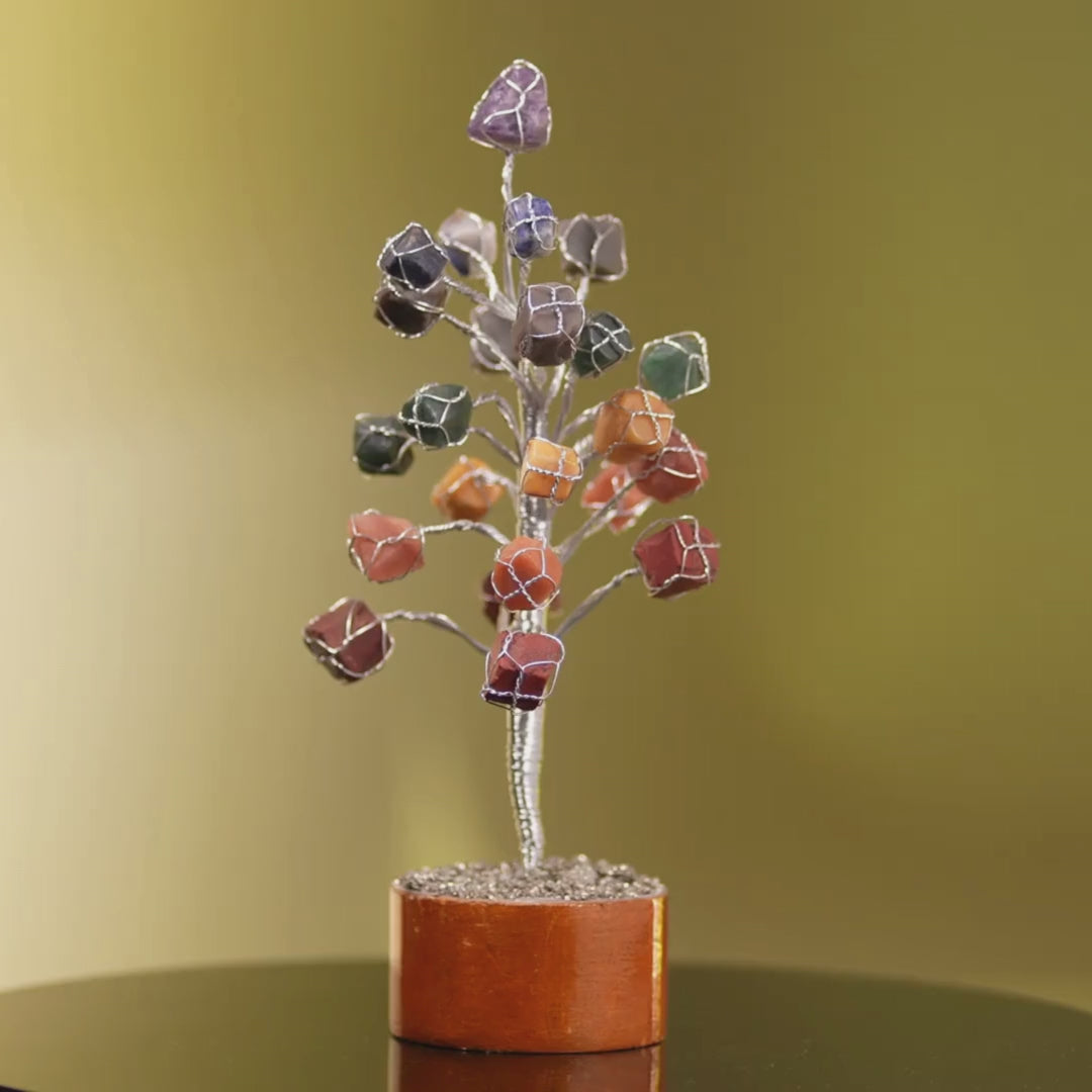 The Seven Chakra Raw Stone Tree blends the powerful energies of seven distinct crystals with the grounding stability of a natural agate base. Each crystal corresponds to a chakra, fostering balance, well-being, and tranquility. This handcrafted tree serves as a beautiful decor accent while enhancing your energetic environment.