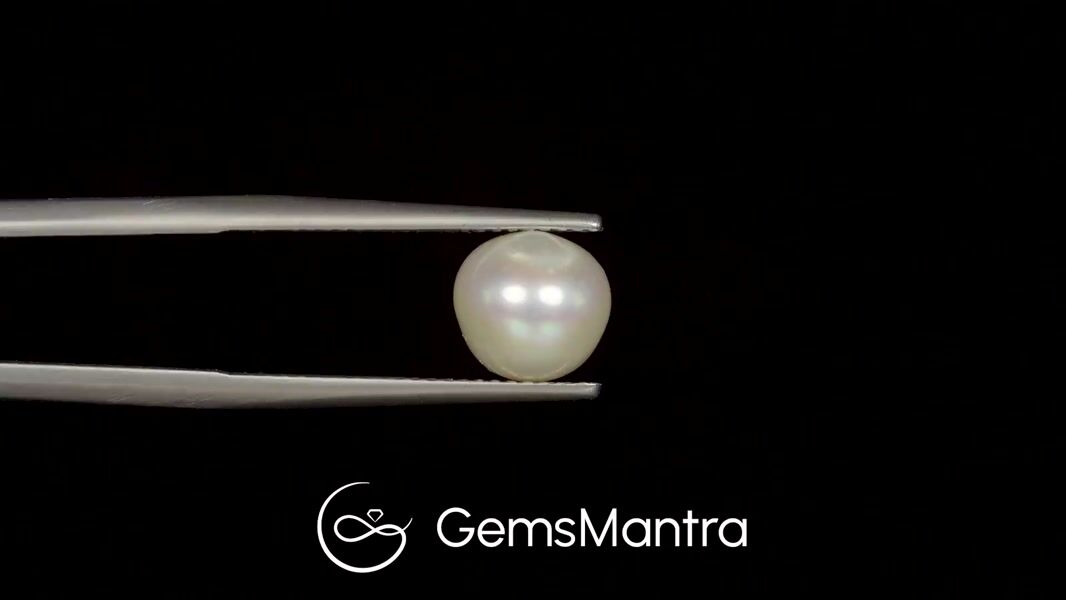 The South Sea Pearl glows with a luminous white sheen, radiating luxury and oceanic elegance. Revered in astrology for fostering peace, emotional balance, and prosperity, it enhances grace and composure. This 3.84-carat round pearl with a drop cabochon cut displays natural brilliance. Certified for authenticity, it guarantees genuine South Sea origin.