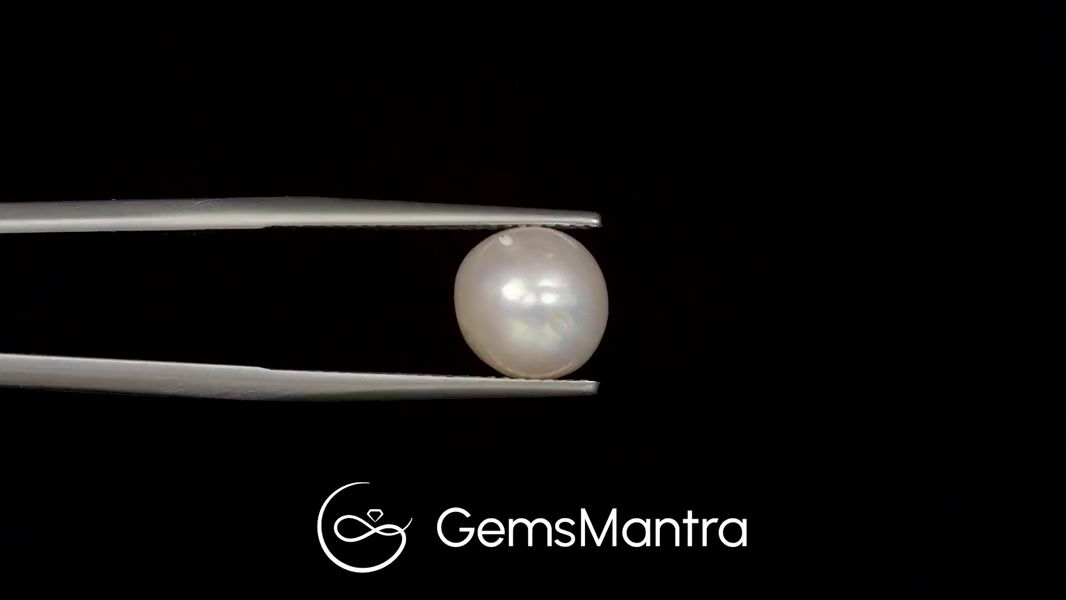 The South Sea Pearl glows with a brilliant white sheen, radiating elegance and ocean-born splendor. Astrologically, it is cherished for enhancing peace, prosperity, and emotional balance, fostering calmness and inner clarity. This 5.74-carat round pearl with a drop cabochon cut exudes refined allure. Certified for authenticity, it ensures genuine South Sea origin.