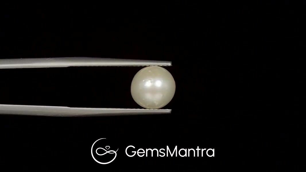 Radiating a luminous white glow, this South Sea Pearl captivates with its serene aura and flawless surface. Revered for attracting prosperity and emotional calmness, it is cherished by astrological enthusiasts. The 4.37-carat round drop-cut gem showcases elegant craftsmanship and natural allure. Its authenticity is assured through certified gemological evaluation.