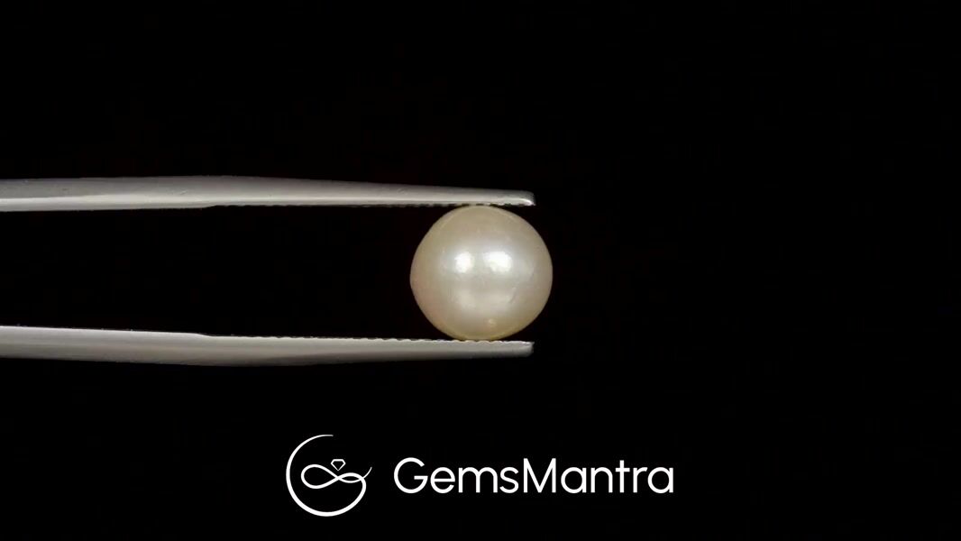 This South Sea Pearl gleams with a serene white tone, radiating timeless charm and elegance. In astrology, it is revered for fostering calmness, nurturing love, and promoting harmony in life. The 4.28-carat gem showcases a flawless round shape with a graceful drop cabochon cut. Certified authentic, it ensures genuine South Sea origin and exceptional purity.