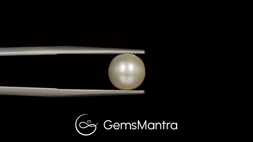 Shimmering with a milky white glow, this South Sea Pearl exudes elegance and tranquil sophistication. In astrology, it is cherished for fostering peace, emotional healing, and spiritual growth. The 4.35-carat gem features a perfectly round shape with a polished drop cabochon cut. Certified authentic, it guarantees genuine South Sea origin and impeccable quality.