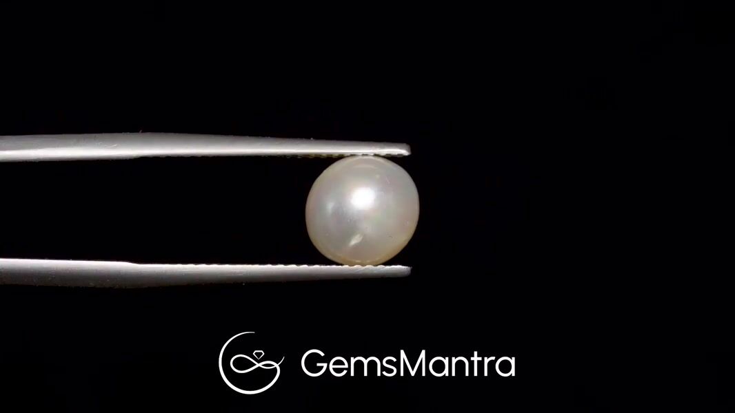 Radiating a gentle white glow, this South Sea Pearl captivates with its graceful elegance and oceanic purity. Astrologically, it is associated with peace, confidence, and emotional well-being. The 3.96-carat gem displays a beautiful round shape with a smooth drop cabochon cut. Certified authentic, it confirms genuine South Sea origin and remarkable quality.