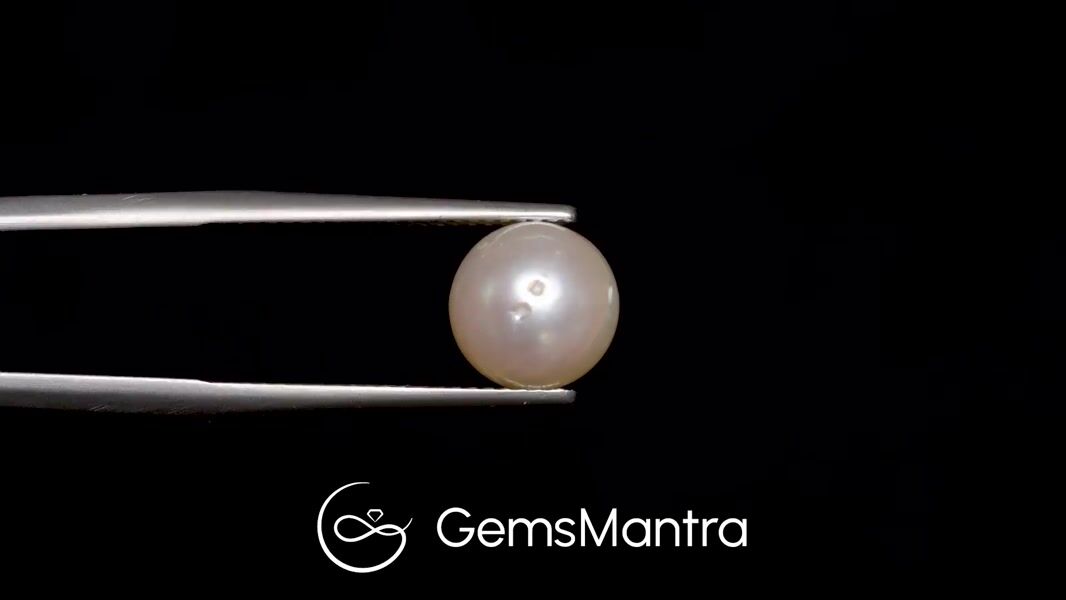 Illuminating with a soft white shimmer, this South Sea Pearl radiates elegance and natural sophistication. Astrologically, it is known for attracting tranquility, mental clarity, and emotional balance. The 5.12-carat gem presents a perfect round shape with a lustrous drop cabochon cut. Certified authentic, it confirms genuine South Sea origin and timeless purity.