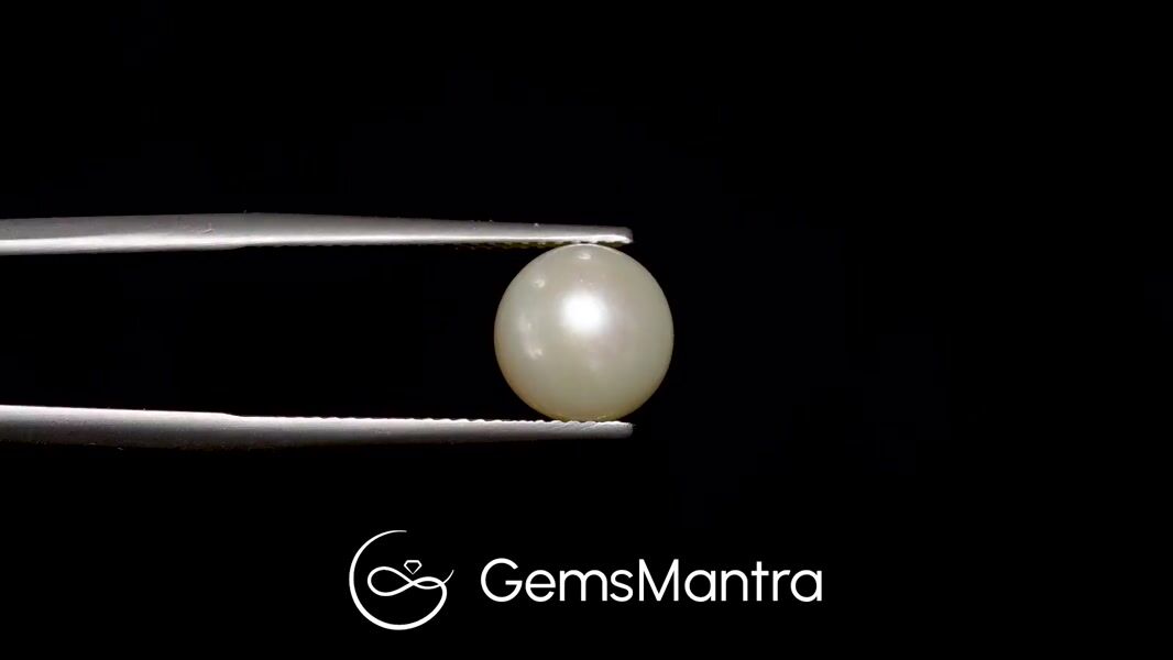 Shining with a soft silken glow, this South Sea Pearl reflects effortless beauty and natural grandeur. Linked astrologically to emotional steadiness, clarity, and wealth attraction, it soothes the spirit. The 5.49-carat jewel displays a graceful round outline with a glowing drop cabochon polish. Verified authentic, it bears genuine South Sea heritage and superior refinement.