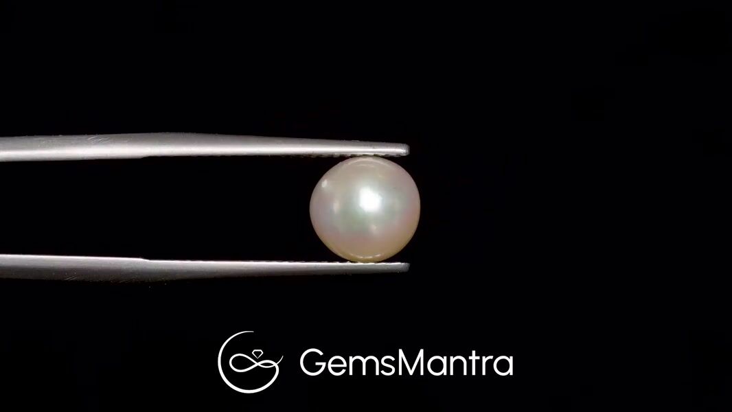 Glowing with a soft moonlit radiance, this South Sea Pearl reflects elegance born from ocean depths. Astrologically, it symbolizes serenity, emotional clarity, and inner fulfillment. The 3.89-carat pearl presents a smooth round shape accentuated by a polished drop cabochon cut. Certified authentic, it confirms pure South Sea origin and refined quality.