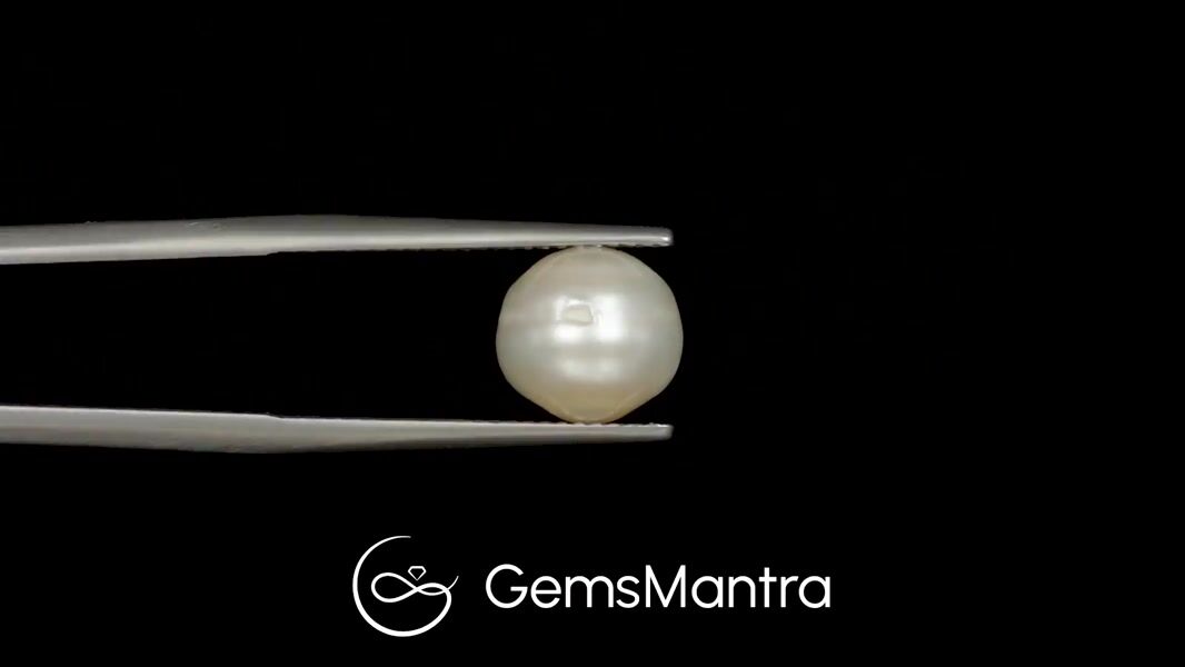 This radiant white South Sea Pearl showcases a serene luster that reflects pure oceanic beauty. Linked with the Moon, it is said to enhance calmness, emotional harmony, and inner balance. Featuring a round shape with a drop cabochon cut, it weighs 5.32 carats. Certified for authenticity and graded for quality assurance by a reputed gem laboratory.