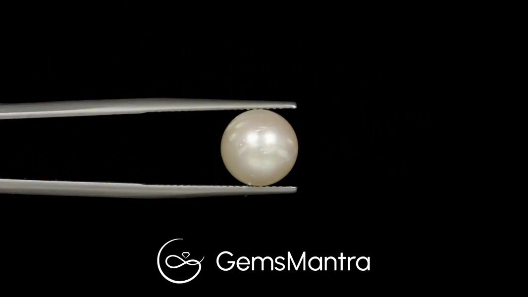 This lustrous white South Sea Pearl captures the ocean’s essence with its radiant glow and elegance. Connected with the Moon, it symbolizes tranquility, emotional balance, and purity of heart. Styled in a round shape with a graceful drop cabochon cut, it weighs 7.15 carats. The gemstone is certified for authenticity and superior quality by a renowned laboratory.