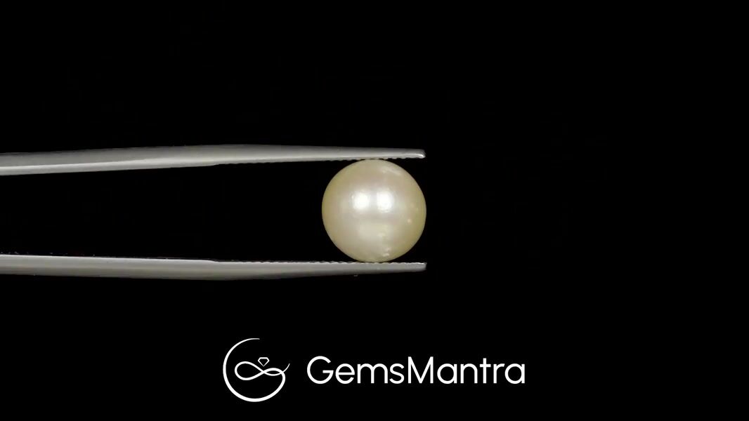 This elegant white South Sea Pearl gleams with a luminous radiance that echoes oceanic beauty. Linked with the Moon, it is known to bring emotional harmony, wisdom, and calmness to the soul. Crafted in a round form with a refined drop cabochon cut, it weighs 6.87 carats. Certified for authenticity and quality by an accredited gemological laboratory.